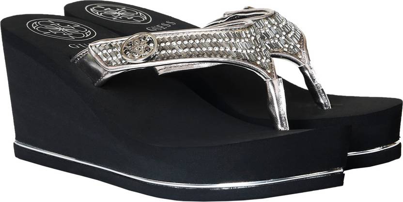 Women Wedges Sandal (Silver, Black , 7)