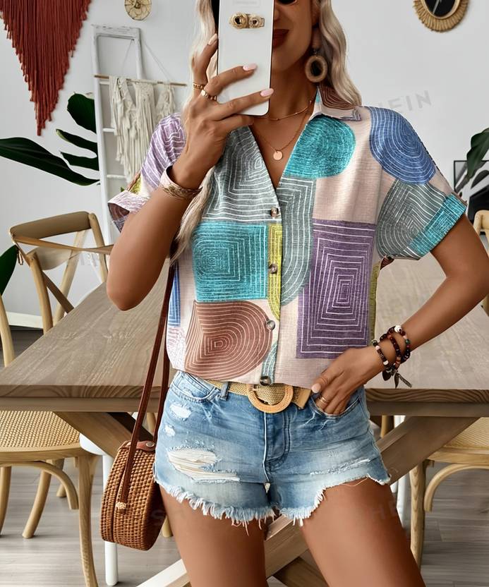 GUFRINA Women Regular Fit Printed Wingtip Collar Casual Shirt
