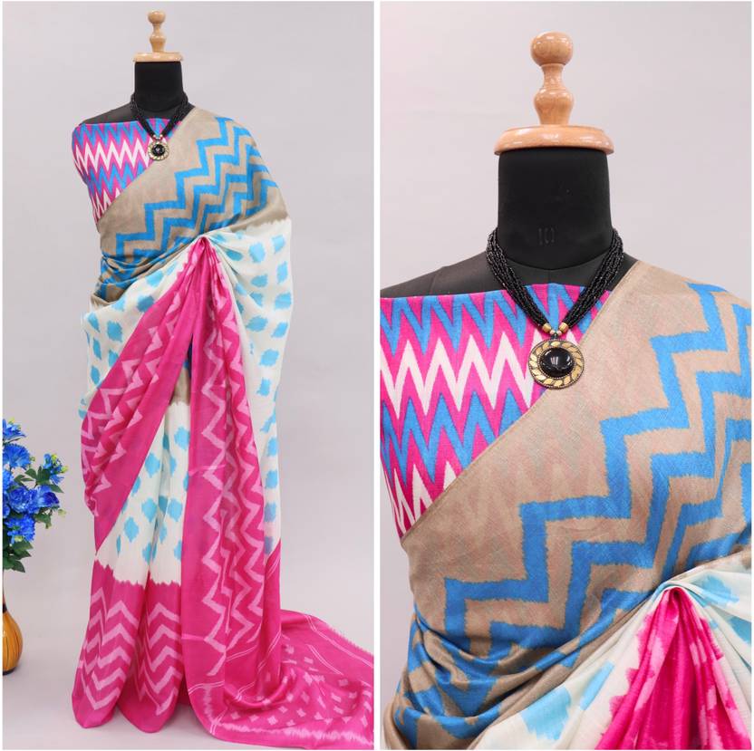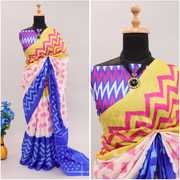 Gugaliya Printed Ikkat Cotton Blend, Art Silk Saree (Multicolor)