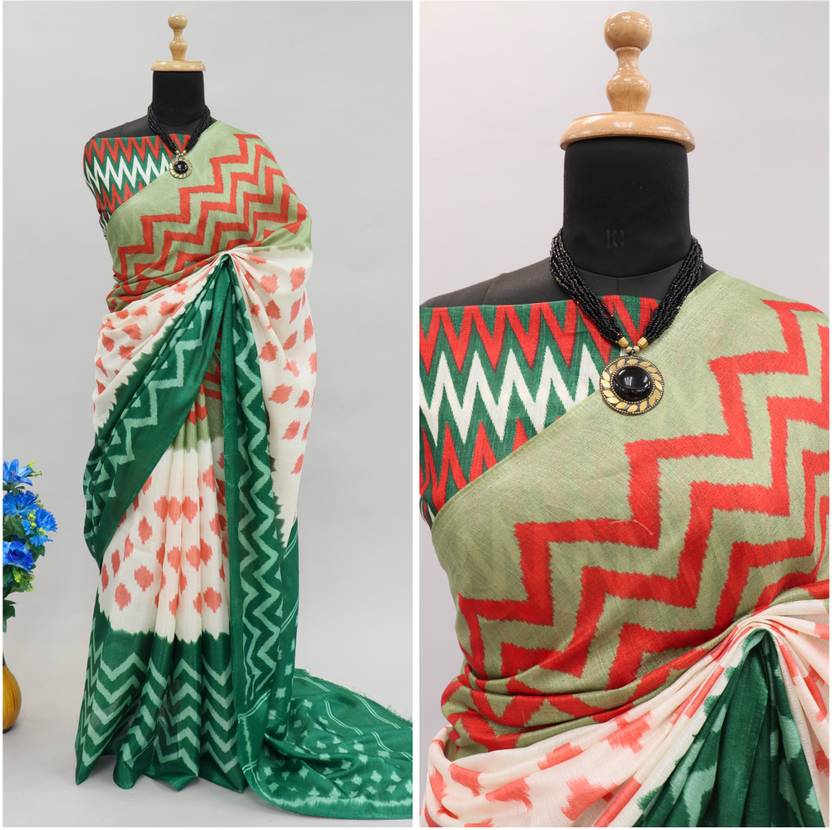 Gugaliya Printed Ikkat Cotton Blend, Art Silk Saree  (Multicolor)