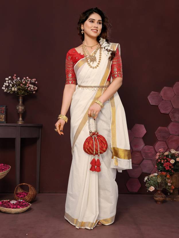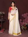 1 Kerala Saree ,Attached Matching Blouse Piece (Part of Saree Fabric – Unstitched) ,1 Separate Designer Embroidered Blouse Piece (Unstitched)
