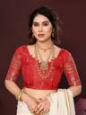 Blouse 1 (Attached): A matching fabric blouse that is part of the saree itself, easily cut and stitched as per your size.