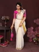 Original Kerala saree from Gugaliya, Includes 2 Unstiched blouse pieces: 1 attached & 1 designer embroidered, Promotes rural craftsmanship and heritage, Lightweight and comfortable fabric, Handwoven by traditional weavers, Suitable for festivals, weddings & special occasions