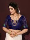 Blouse 1 (Attached): A matching fabric blouse that is part of the saree itself, easily cut and stitched as per your size.