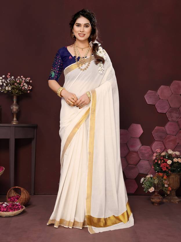 1 Kerala Saree ,Attached Matching Blouse Piece (Part of Saree Fabric – Unstitched) ,1 Separate Designer Embroidered Blouse Piece (Unstitched)
