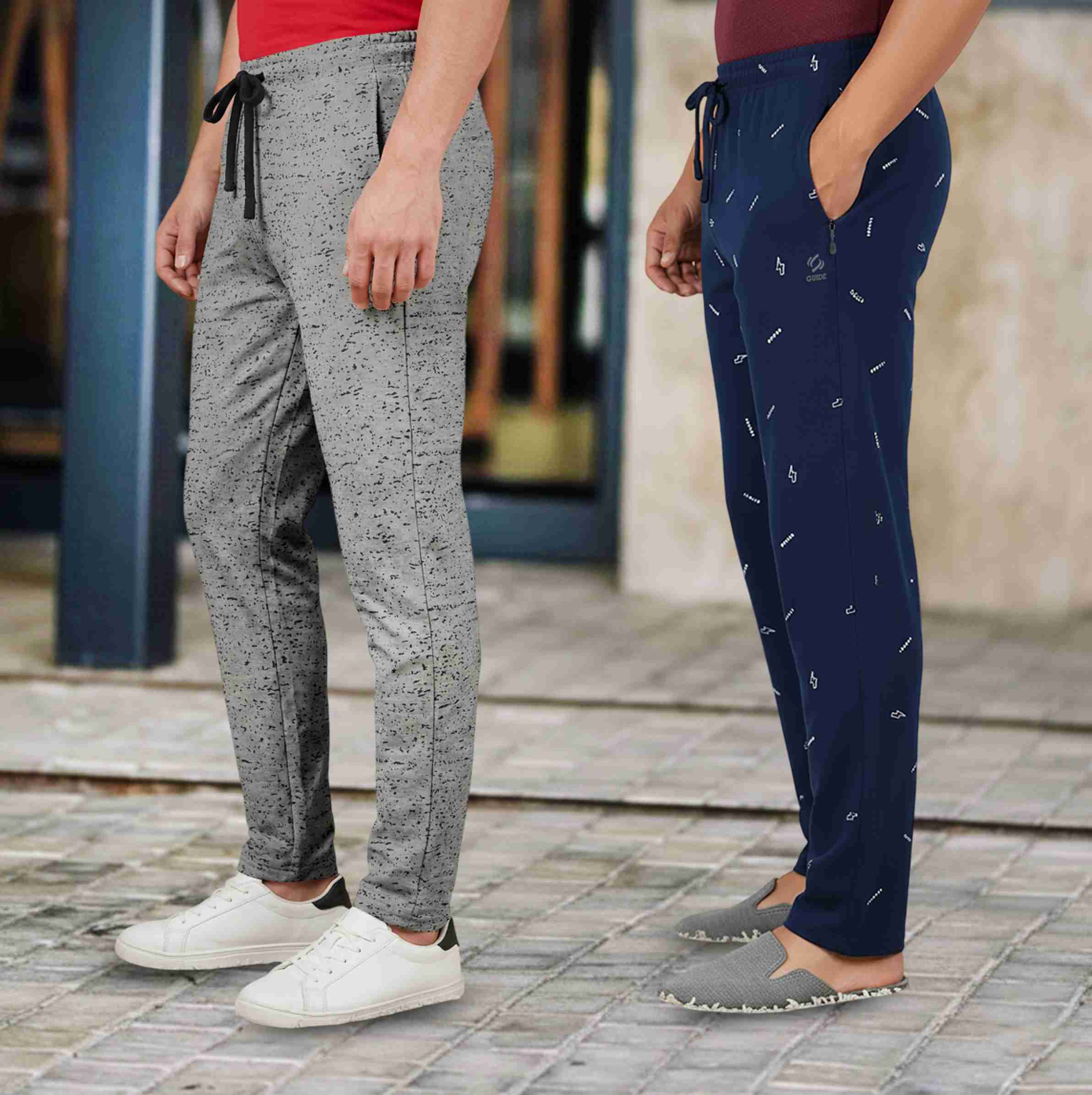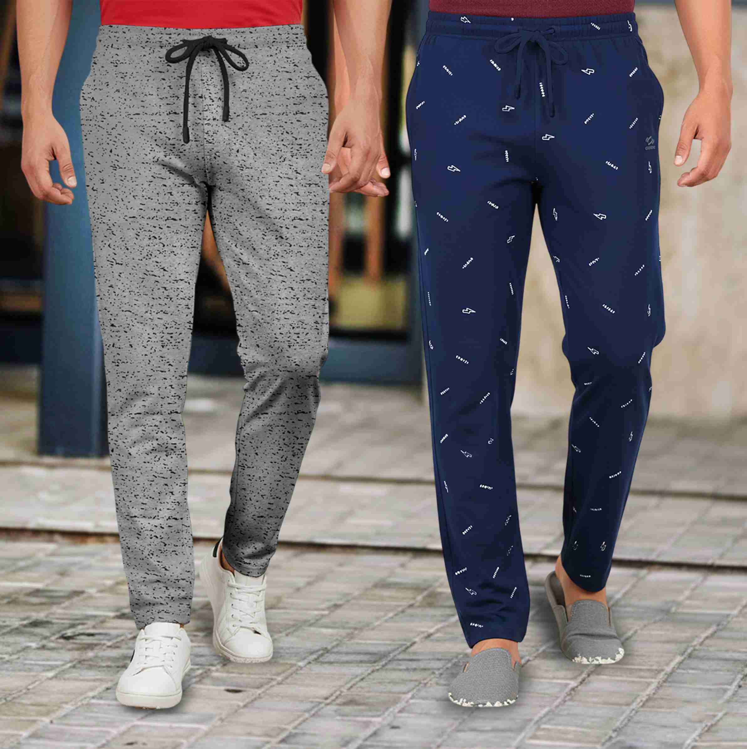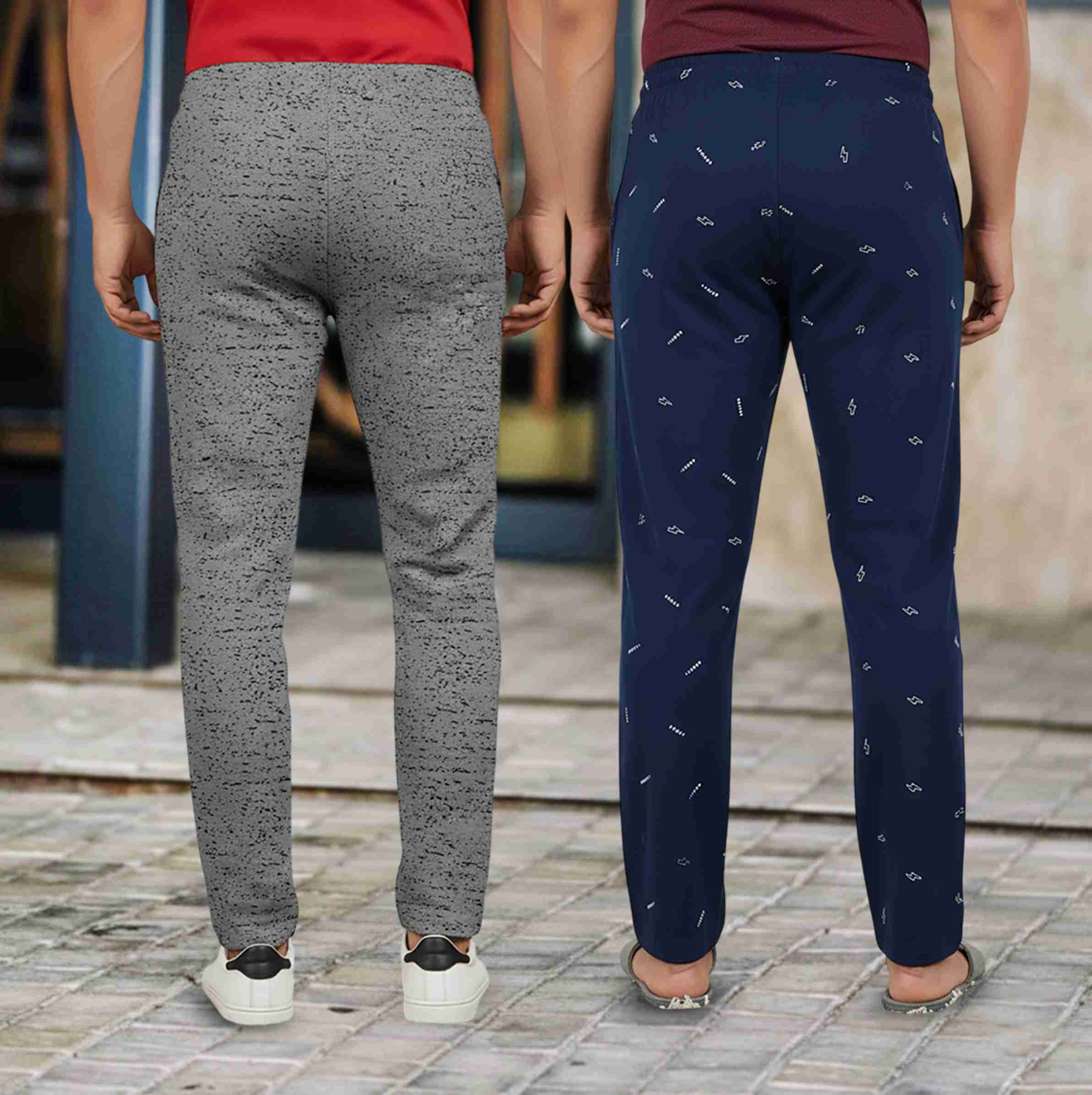 Pack of 2 Men Printed Grey, Blue Track Pants