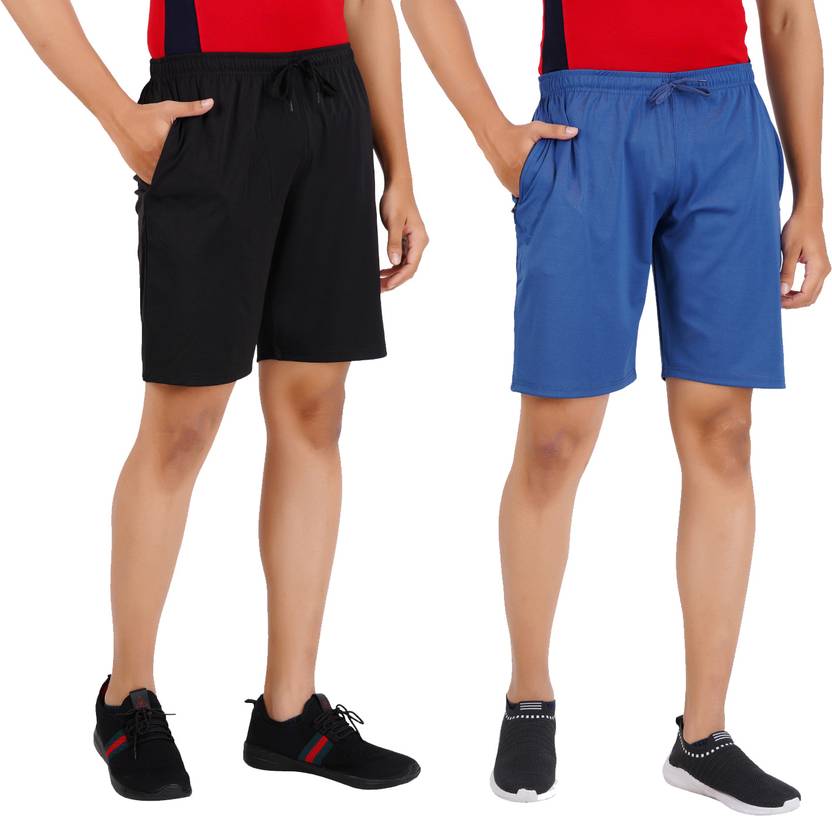Guide Pack of 2 Solid Men Black, Blue Sports Shorts