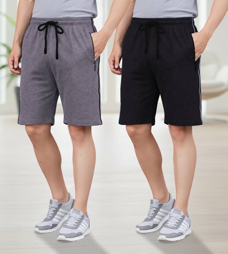 Guide Pack of 2 Solid Men Grey, Black Regular Shorts