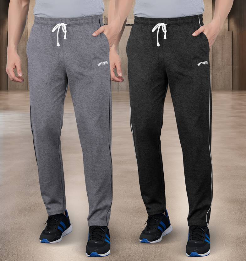 Guide Pack of 2 Men Solid Grey, Black Track Pants
