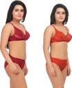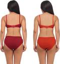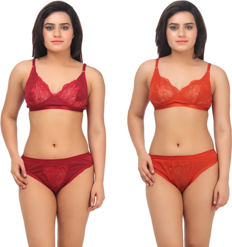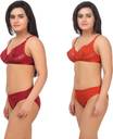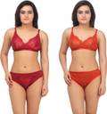 Gujarish Bra & Panty Set Self Design Maroon, Orange Lingerie Set
