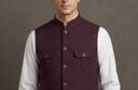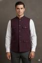 This sophisticated 4-pocket purple Nehru jacket (also referred to as a Bandi or Modi vest) blends traditional elegance with functional utility-inspired aesthetics.