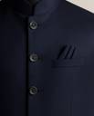 Add a touch of elegance to your traditional attire with this Navy Blue Modi Nehru Jacket for men. Crafted with a sleek finish, this sleeveless jacket features a classic mandarin collar, 5-button front closure, and three well-placed pockets including a stylish chest pocket square design. Ideal for weddings, receptions, cultural events, and festive celebrations, this waistcoat complements kurta-pajamas and formal shirts alike. A perfect blend of modern charm and ethnic grace, available in sizes M, L, XL.