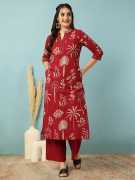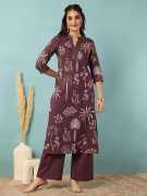 legant Printed Kurta Set for Women – Stylish & Comfortable Ethnic Wear. Upgrade your wardrobe with this stunning printed kurta set, perfect for casual outings, festive celebrations, and office wear. Crafted from premium-quality fabric, this kurta set ensures all-day comfort while exuding effortless elegance. The intricate golden prints add a touch of tradition, while the straight-cut design enhances your silhouette. *Premium-quality fabric for comfort & durability *Elegant golden print for a festive look *Straight-cut kurta with stylish 3/4th sleeves *Comes with matching solid palazzo pants *Ideal for office, festive, and casual wear