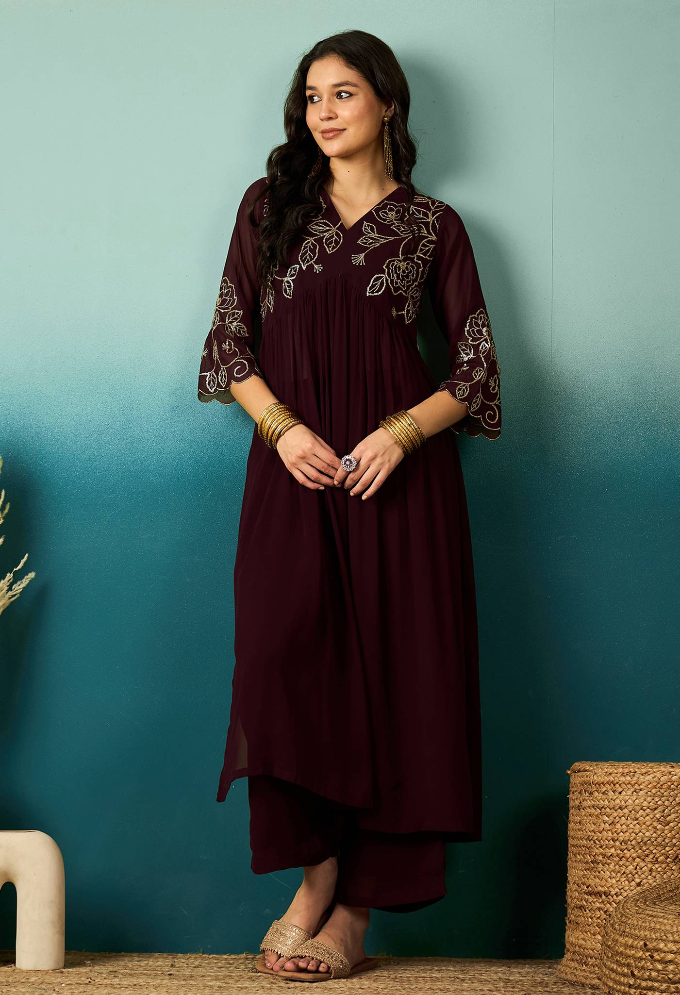 Elevate your wardrobe with this stunning embroidered kurta, a perfect blend of traditional elegance and contemporary style. Crafted from high-quality fabric, this kurta features intricate gold embroidery that adds a touch of opulence to its overall design. The rich color serves as a striking backdrop, allowing the golden threads to shimmer and catch the light, making it an ideal choice for festive occasions, family gatherings, or even a night out. The kurta's tailored fit ensures comfort while maintaining a flattering silhouette, making it a versatile piece that can be dressed up or down.