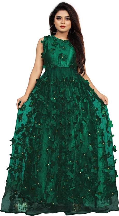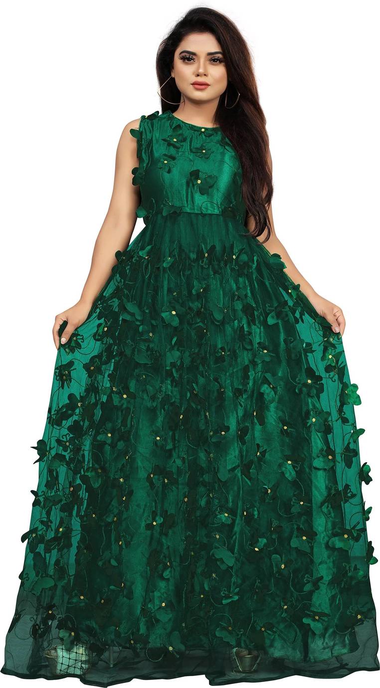 Gown Fabric : Net and Satin, Gown Color :Green, Gown Neck Style : Round Neck, Gown Work : Embellished, Size Guide : Free Size Fits Upto bust 44 Inch, Gown Sleeves Style: Sleeveless, Occasion : Party Wear,Wedding wear,Festival Wear, Stitching Type : Semi-Stitched, Season Type : Suitable For All Season