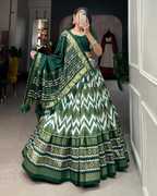 Lehenga Work : Bandhani And Ajarakh Print With Foil Work,