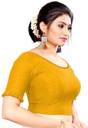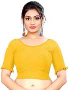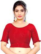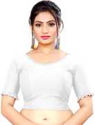 This elbow sleeve dobby blouse crafted from a luxurious cotton lycra blend offers a perfect blend of comfort and style. With a fabric designed for both flexibility and breathability, it ensures all-day ease. The blouse features an elegant round neck design, adding a touch of sophistication to your ensemble. With a blouse length of 15 inches, it strikes a balance between trendy and modest, making it suitable for various occasions. Whether paired with a saree or a skirt, this blouse is sure to elevate your look with its understated charm and versatility.
