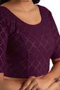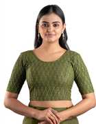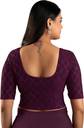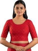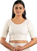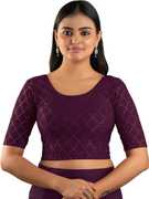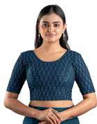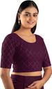 This stylish stretchable blouse is designed with elegant foil print work, featuring a round neckline and elbow-length sleeves. Made from comfortable cotton lycra fabric, it offers a flattering fit with a length of 14-15 inches. Available in nine vibrant colors and sizes ranging from 30 to 40 inches, it is perfect for adding a touch of sophistication to any outfit.