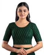 Stretchable Blouse, Foil Print Work, Elbow Sleeve, Round Neck, Length 14/15 Inch, Fabric Cotton Lycra, Available in 9 Colors, Size available from 30 to 40 inch