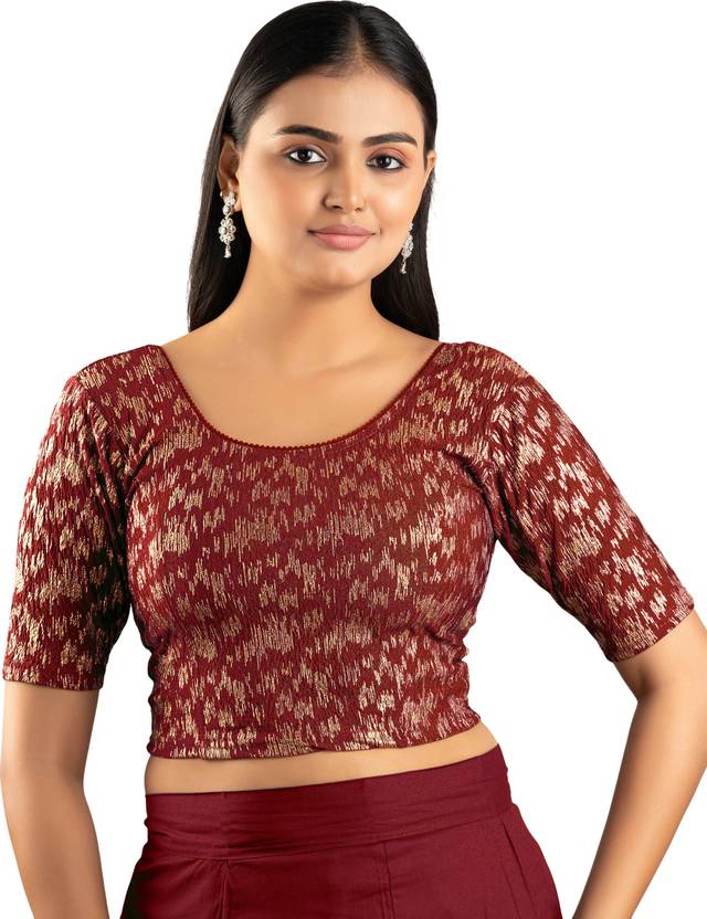 Stretchable Blouse, Foil Print Work, Elbow Sleeve, Round Neck, Length 14/15 Inch, Fabric Cotton Lycra, Available in 9 Colors, Size available from 30 to 40 inch