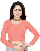 Elevate your wardrobe with this chic blouse crafted from stretchable lycra fabric. The round neck design offers a classic and flattering silhouette, while the full sleeves provide a touch of elegance and versatility. The lycra material ensures a comfortable, form-fitting shape that moves with you, making it perfect for both casual and formal occasions. Embrace style and comfort with this must-have addition to your collection.