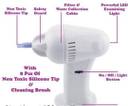 Description :Ear Cleaner is the safe and effective way to clean your ears. The gentle suction draws dirt particles and moisture out of the ear canal. Say goodbye to cotton swabs forever! Gentle & effective ear cleaning Unique safety guide prevents tip from entering too far inside the ear canal. Battery operated cordless design is convenient and great for travel. Includes 8 reusable color-coded silicone tips and a handy cleaning brush. Features a powerful examining light. Unit disassembles for fast thorough cleaning. Specifications : Material : ABS Tip Material : Non toxic silicone.