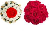 GuruEmbellish Designed Flower Gajra Juda Maker, Hair Gajra Bun Juda White & Red Combination Bun (Multicolor)