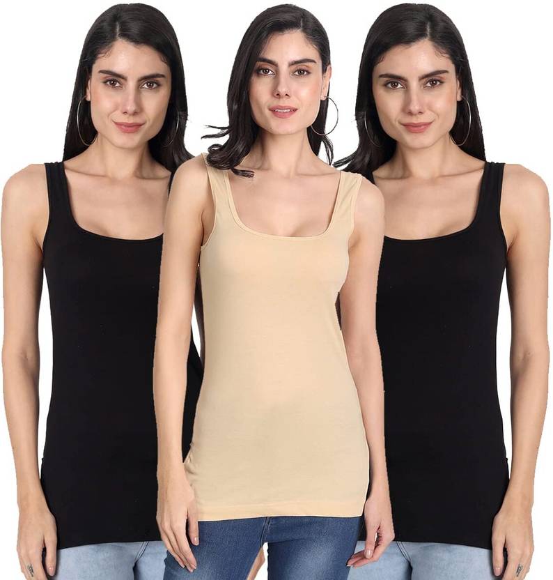 Women's Regular Fit Sleeveless Cotton Long Camisole Slip Spaghetti