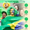 Support Brazil with a 3x5ft vibrant flag., Crafted from durable polyester with double stitching., Features two brass grommets for easy hanging., UV-resistant dye keeps colors vivid., Enhances football festival atmosphere.
