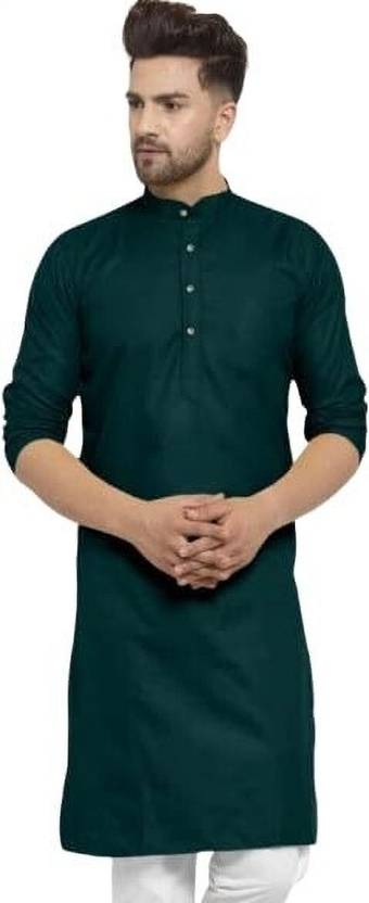 GUYS HUBB Men Solid Straight Kurta (Green)