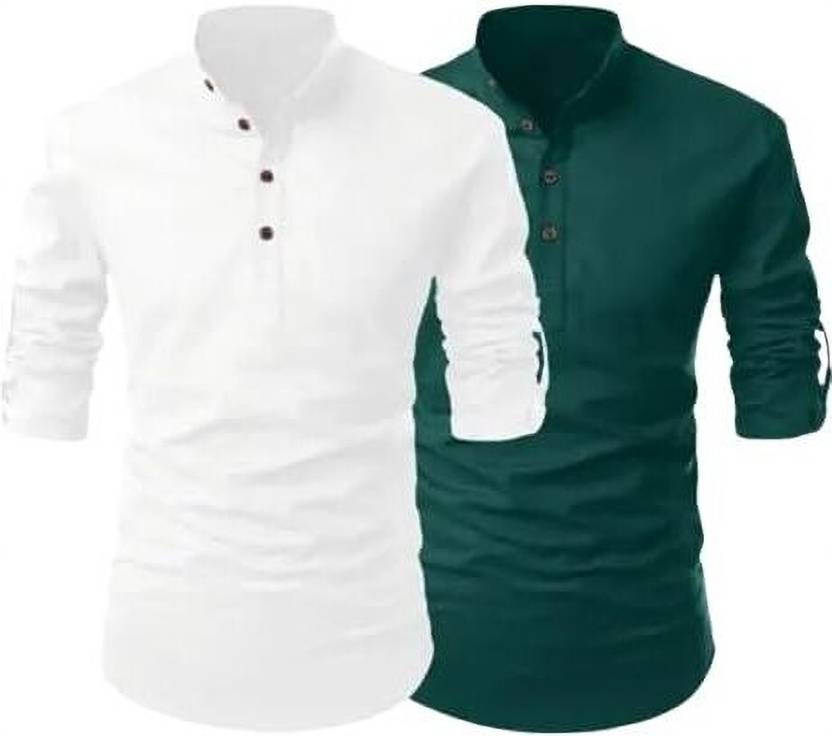 Combo of 2 Solid Printed Casual Mandarin Slim Fit Short Kurta for Men's
