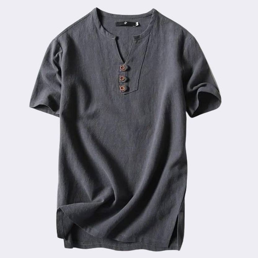 Men Solid Cotton Blend Straight Kurta (Grey)