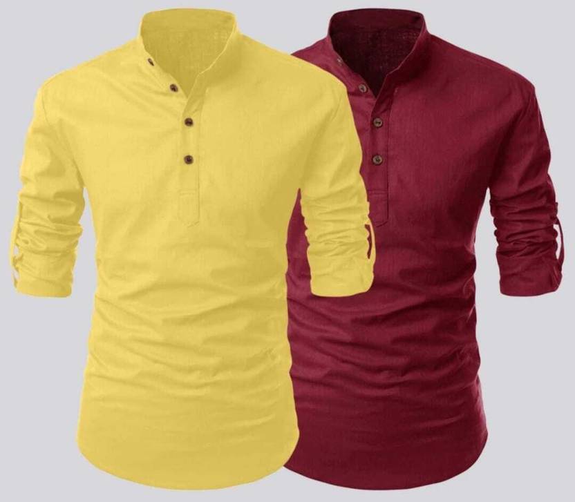 The design is modern yet timeless, with a clean-cut silhouette that flatters all body types. A subtle, well-placed pocket adds a practical touch without compromising the sleek aesthetic. The kurta's minimalistic design allows it to be paired seamlessly with jeans, chinos, or traditional trousers, making it a versatile addition to any wardrobe. Available in a variety of colors, it caters to diverse style preferences, from bold and vibrant to subtle and muted tones. Whether you're dressing for a casual day out or a semi-formal gathering, this cotton blend short kurta promises to be a reliable and stylish choice.