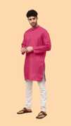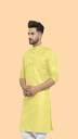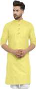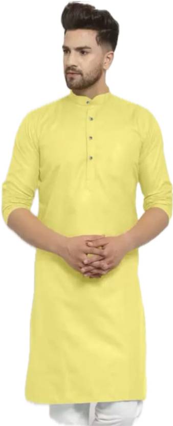 Men Solid Cotton Blend A-line Kurta (Yellow)