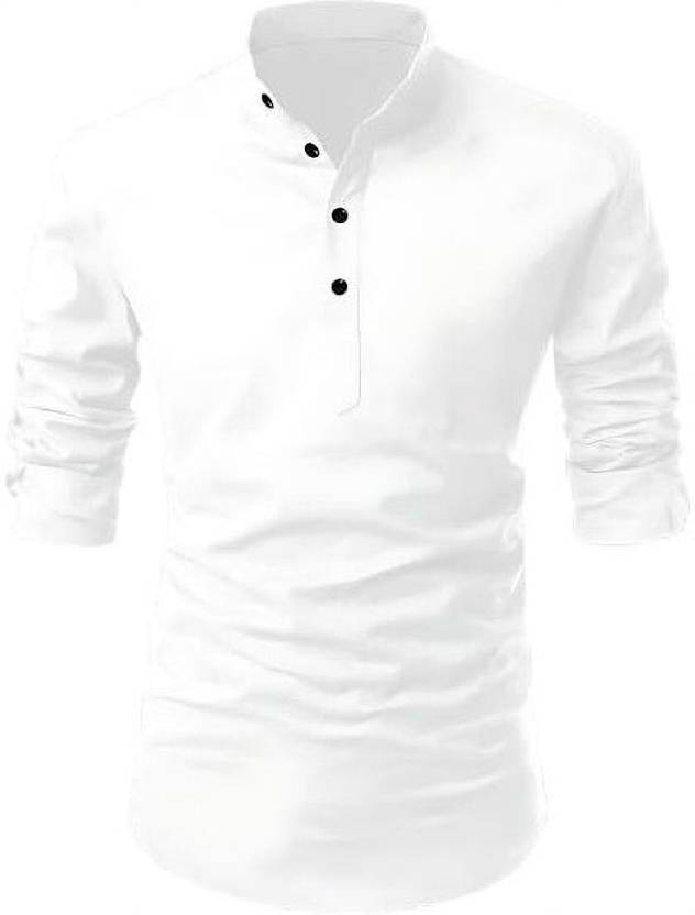 Get a smart and stylish look with this solid men's kurta shirt. Made with high-quality cotton blend fabric, this shirt is soft, breathable, and comfortable for all-day wear. It comes with a modern Mandarin collar and full sleeves, perfect for both formal and casual wear. You can wear it to office, party, festival, or daily outing. The neat button placket and solid color design make this shirt look trendy and fashionable. Pair it with black pants, jeans, or trousers to complete your stylish look.