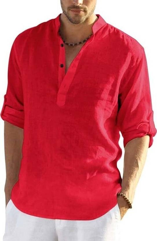 Men Solid Cotton Blend A-line Kurta (Red)