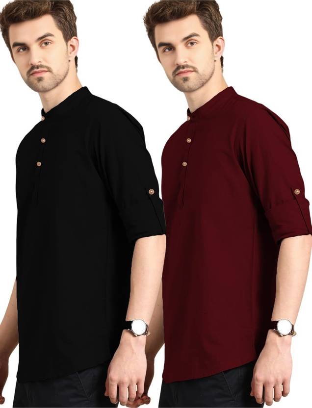 GUYS HUBB Men Solid Straight Kurta (Beige)