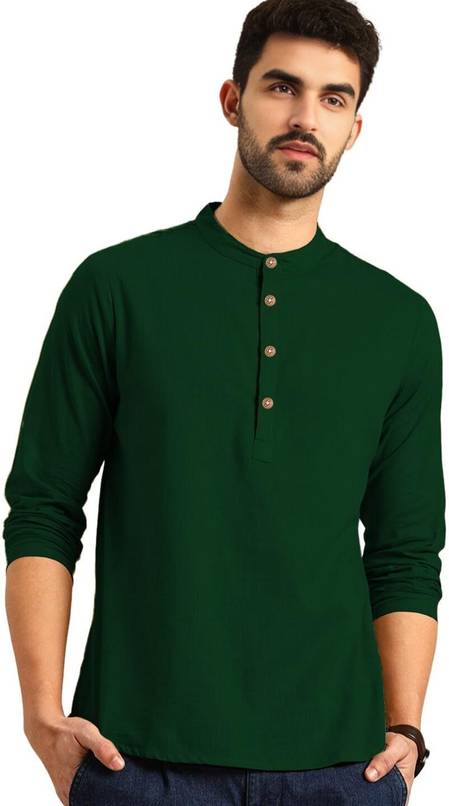 GUYS HUBB Men Solid Straight Kurta (Beige)