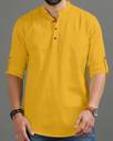 Men Solid Pure Cotton Straight Kurta (Beige)