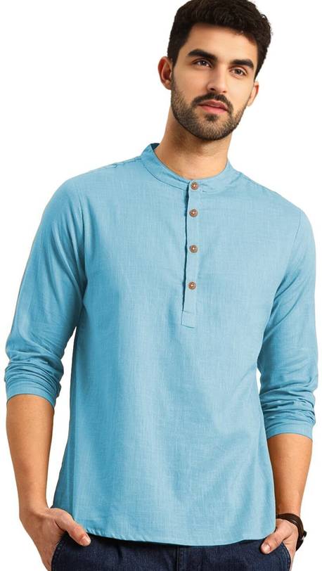 Men Solid Pure Cotton Straight Kurta (Beige)