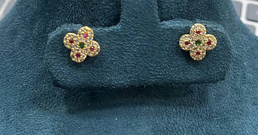 earring is a piece of jewellery attached to the ear via a piercing in the earlobe or another external part of the ear. New Premium Collection CZ Stud Earrings Made With Brass. Non Allergic And Skin Friendly.