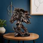 GW Creations Running Horse Handcrafted Statue|Home Décor|Drawing |living Room|Marble Finish Decorative Showpiece - 26 cm (Polyresin, Brown, Gold, Black)