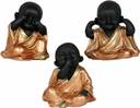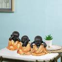 GW Creations Set of 3 Baby Buddha Monk Statue Decorative Showpiece - 12 cm (Polyresin, Gold)
