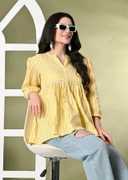 Introducing the H Hiphonic Women's Rayon Embroidered Regular Fit Tops Short Kurti, the perfect addition to your wardrobe for any occasion. Crafted from high-quality rayon fabric, these tops offer a soft and 0comfortable feel against your skin, while also being durable and long-lasting.Featuring beautiful embroidery work, these tops boast an intricate and eye-catching design that will make you stand out from the crowd. The embroidery work is done by skilled artisans, ensuring that each piece is unique and of the highest quality.Designed for a regular fit, these tops flatter any body type and provide a comfortable, relaxed fit that you can wear all day long. The round neck and three-quarter sleeves add a touch of elegance and sophistication to the overall design, making these tops suitable for both formal and casual occasions.Pair them with your favorite jeans for a casual look or dress them up with a skirt or trousers for a more formal occasion. The versatile design makes them a perfect addition to your wardrobe, allowing you to create a variety of stylish and fashionable outfits.Easy to care for, these tops are machine washable, making them a convenient choice for busy women who want to look good without spending too much time on maintenance.Invest in the H Hiphonic Women's Rayon Embroidered Regular Fit Tops today and experience the perfect blend of comfort, style, and elegance. Order now and get ready to turn heads wherever you go!