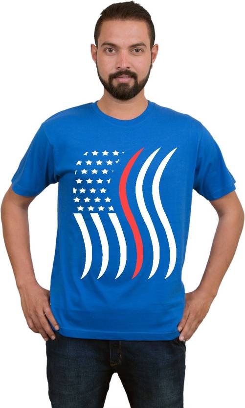 Men Graphic Print Round Neck Pure Cotton Blue T-Shirt
