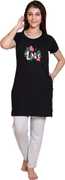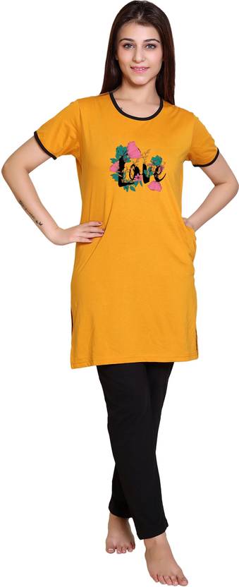 AZF Printed NightSuits for Summer Specially Designed for Women's & Girls. No Fade or Shrinkage Issues Regular Fitted and Perfect Length Hide Your Tummy Shaping Your Body Line Perfectly Good for Legging and Tight Jeans Round Neck Super Soft Breathable High Stretchy and Comfortable the Touch Feeling is Admirable.
