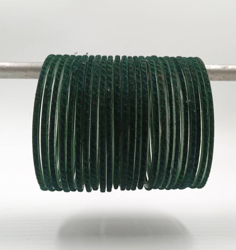 Beautiful Velvet Fabric & Glass Bangle Set For Women & Girls KAAI GREEN Color (Pack Of 24) size 2.4