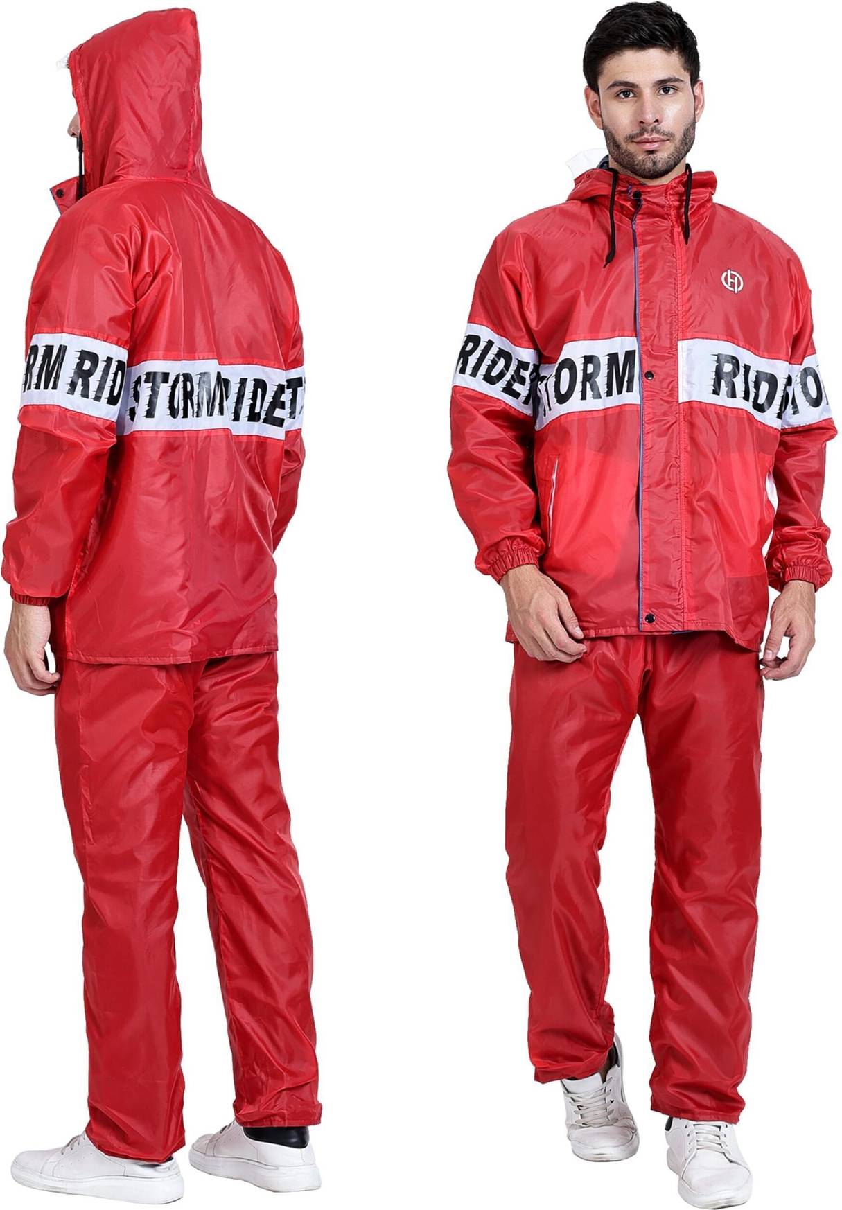 The Hacer Storm Rider Raincoat with Pants for Men offers adjustable drawstrings for a tailored fit and full-length coverage against rain and wind. Featuring an integrated hood, pockets, and durable construction, this rainwear ensures comfort and protection during outdoor activities. Includes a portable carry bag for added convenience.