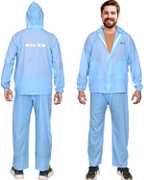 The Hacer Storm Rider Raincoat with Pants for Men offers adjustable drawstrings for a tailored fit and full-length coverage against rain and wind. Featuring an integrated hood, pockets, and durable construction, this rainwear ensures comfort and protection during outdoor activities. Includes a portable carry bag for added convenience.