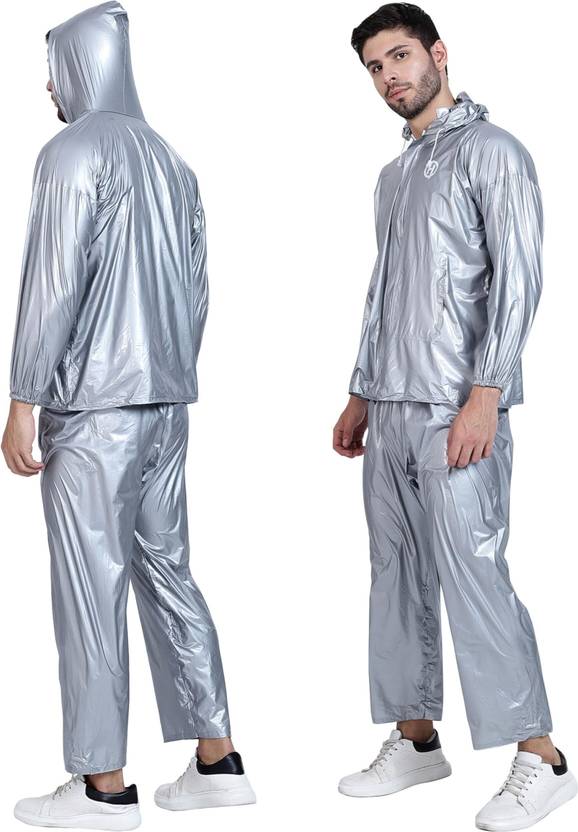 The Hacer Raincoat with Pants for Men offers adjustable drawstrings for a tailored fit and full-length coverage against rain and wind. Featuring an integrated hood, pockets, and durable construction, this rainwear ensures comfort and protection during outdoor activities. Includes a portable carry bag for added convenience.
